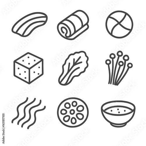 Turkish taffee traditional food vector set with kebab, pastry, soup, and dessert icons in black and white style
