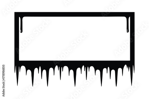 Frozen hanging icicles border or header silhouette vector illustration sketch style winter ice decoration with dripping water effect