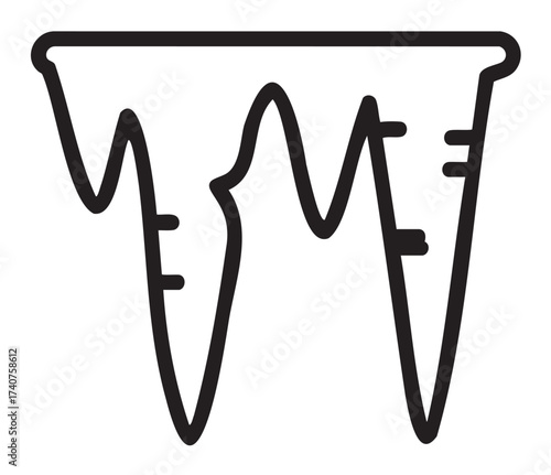 Hand-drawn Icicles Line Art Illustration. Winter Ice Formations Outline Sketch. Simple Frozen Water Element.