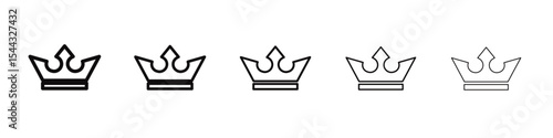 Collection of outline crown icons, set of royal headdresses with stars and jewels, king and queen authority and monarchy symbols.
