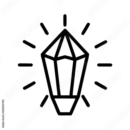 Mystical crystal and mineral line art icons with shining light effects, a collection of geometric gemstone symbols for spiritual or magical branding isolated on white