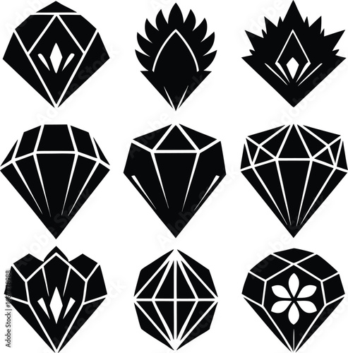 Gem icons in black and white shilhouette style for App Ui