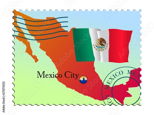 Explore the rich heritage of Mexico City with a rubber stamp featuring the Pyramids of Teotihuacan in vibrant red design