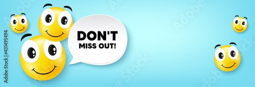 Dont miss out. Smile face with speech bubble. Special offer price sign. Advertising discounts symbol. Smile character. Miss out speech bubble icon. Smiley face background. Vector