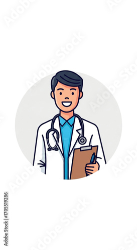 Professional Doctor Wearing White Coat and Stethoscope Isolated on White Background