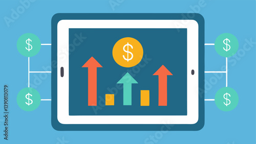 Cash Flow Diagram A flowing diagram on a tablet that illustrates cash inflows and outflows with animated arrows visually showcasing how budgeting impacts savings and investments.