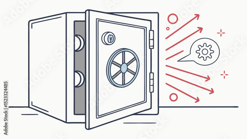 Open Steel Safe with Outgoing Red Arrows and Gear Icon