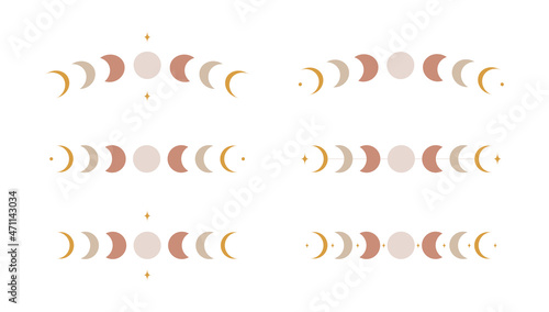 Abstract boho moon phases. Mystic contemporary sun moon symbols, magic poster decor. Vector illustration
