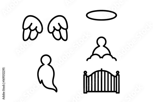 Simple black and white angel icon with halo and wings, a spiritual symbol representing peace, faith, and heavenly guidance.