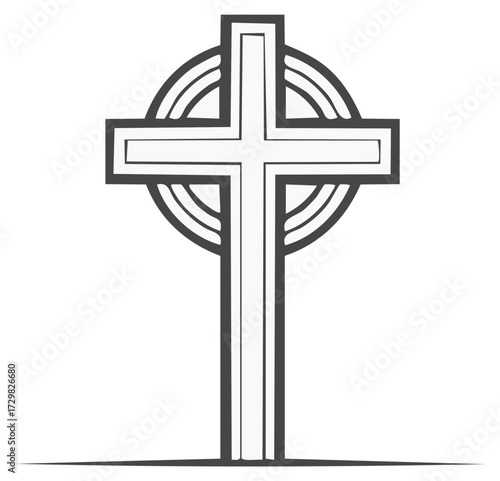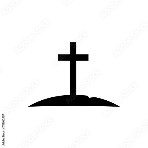 Stylized black cross symbol on white background. Abstract religious spiritual icon design element for faith, hope, and worship concepts.