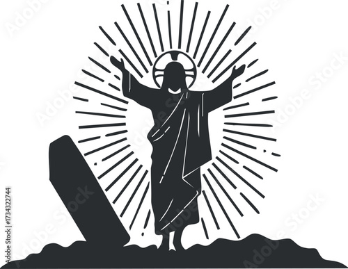 Open tomb vector illustration of the resurrection. A minimalist, geometric icon representing the Christian Easter story.