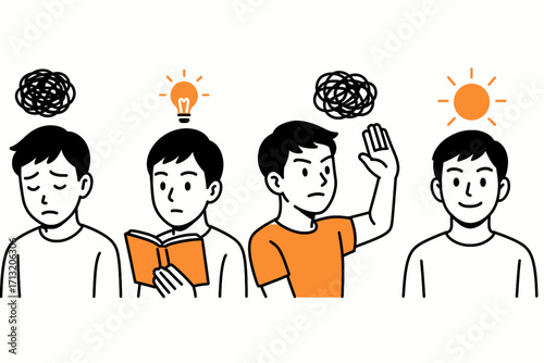 Black and White Vector Silhouette of Boy Pulling Hair in Frustration