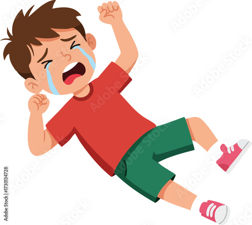 Furious Little Boy Crossing Arms – Angry Kids Expression in Vector Cartoon Style