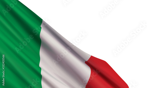 New Year 2026 flag ribbon typography lettering. Abstract green white red flag of Italy in the shape of 2026 logo with sparkle firework isolated on white and blue background