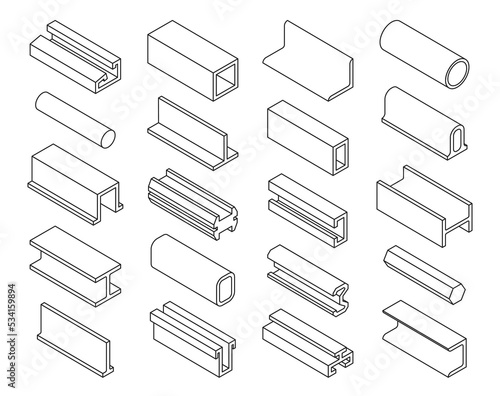 Structural steel beam and pipe product vector icon design.