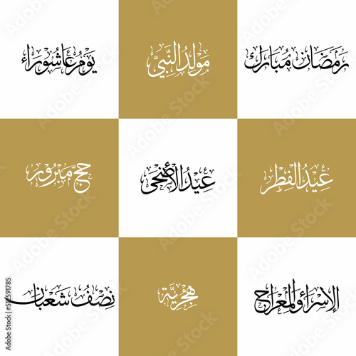Islamic monts arabic calligraphy name. Hijri month names best for calendar and other graphic resources.