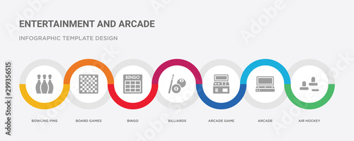 round 12 options entertainment and arcade infographic template design. air hockey, arcade, arcade game, billiards, bingo, board games vector icons