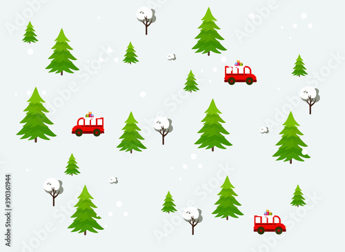 A bus that sells coffee in the snow in winter. winter composition, merry christmas and new year 2024. car on the street