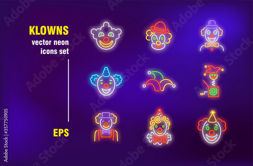 Theater and comedy flat icon set. featuring clown, crown, smile, mask, puppet, jester, microphone, sign.