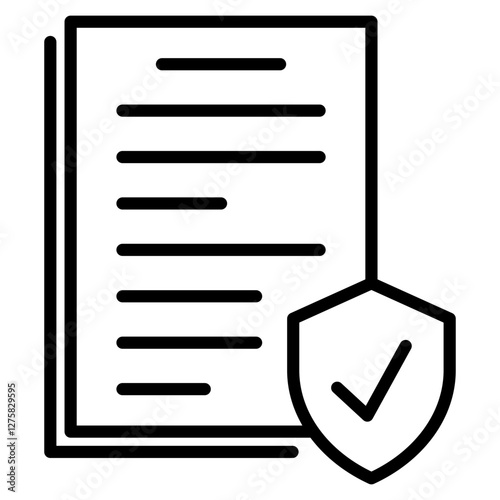 Minimalist line art vector icon of a shield with a checkmark. Symbol of security, protection, verification, and trust. Isolated graphic element for web and app interface design
