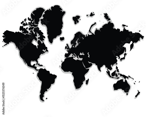 Black silhouette vector illustration of a world map for educational, travel, and design projects