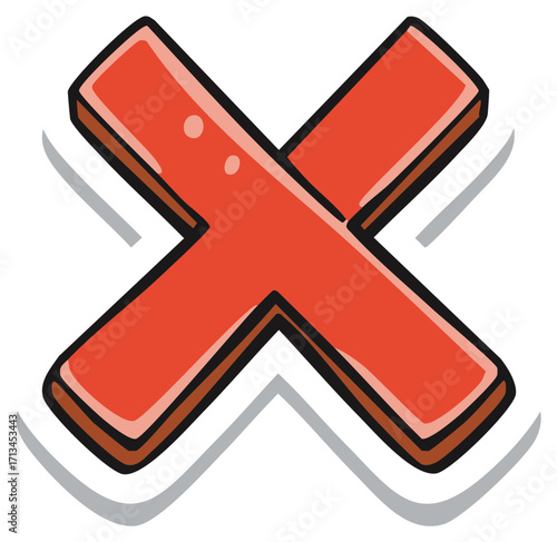 Textured hand-drawn red X mark icon symbolizing cancellation, error, deletion, and incorrect selections for various digital and print design applications