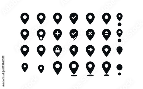 Red cross icon set with not verified symbols, minimal geometric vector collection representing rejection, error, and invalid status, clean sharp silhouette icons on white background