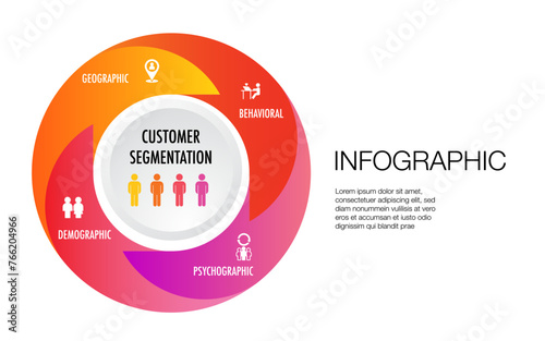 infographic of 4 main types of market segmentation include demographic, geographic, psychographic, and behavioral