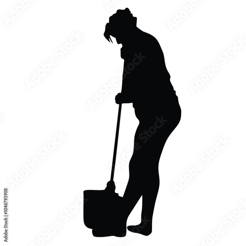 A seated elderly woman in a comfortable chair with a plant in a minimalist black and white vector style, perfect for family and lifestyle illustrations