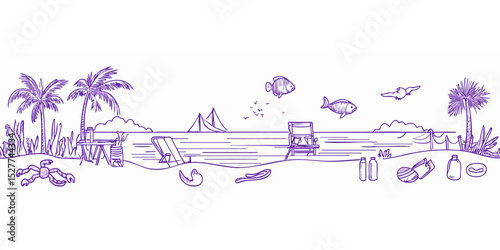 Collection of Beach and Summer Vacation Items for Recreation and Fun.