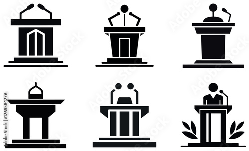 Collection of Various Podium and Lectern Illustrations for Presentations and Speeches
