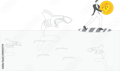 Businessman is getting attacked by a shark