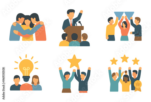 Icon set depicting collaboration and innovation concepts