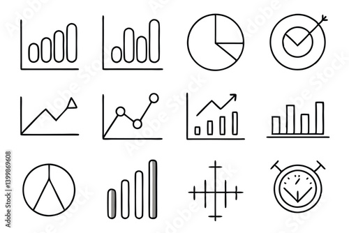 Essential business and financial data visualization icons for illustrating market trends, investment performance, statistical analysis, and economic indicators in various professional