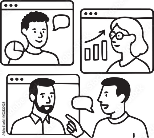 A set of icons depicting data analysis, business growth, and statistical graphs.