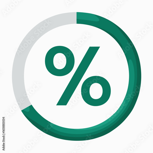 Green outline pie chart icon representing statistical data and financial information on a white background