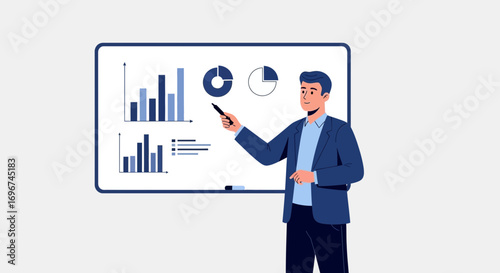 A Teacher Presenting Statistical Data to Students in Vibrant Flat-design Style