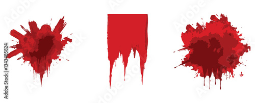 Dramatic vector illustration of ink splashes resembling blood stains, conveying horror, danger, and artistic expression in a graphic design.