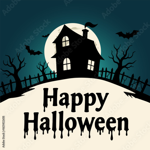Spooky Halloween Night with Haunted House and Pumpkin under the Moon