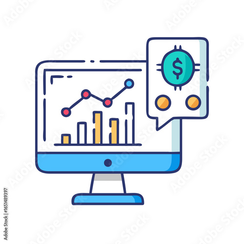 Laptop screen sale discount deals illustration. online shopping technology promotion offer symbol. e-commerce vector ico