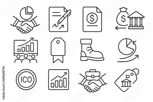 ico  outline icon. Linear vector from cryptocurrency concept. 6 different line style ico  icon included thin, light, regular, medium, bold, black
