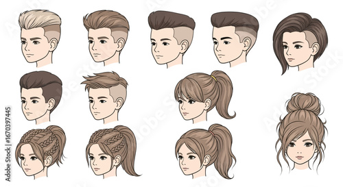 Elegant hairstyle collection showcases modern trends perfect for salon branding or beauty blog designs