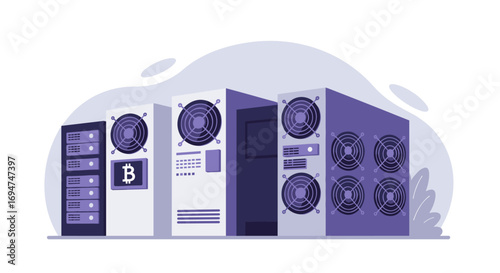 Bitcoin Cryptocurrency Mining Data Center Servers Network Illustration.