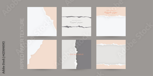 Ripped torn paper texture layouts for social media post, cover, booklet. Сontent about cosmetics, fashion, beauty.