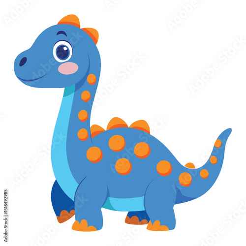 Orange brachiosaurus dinosaur standing and smiling on white background
