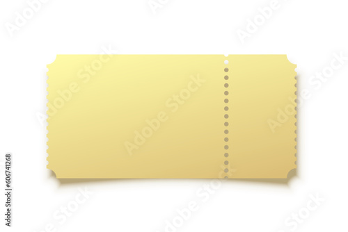 3D golden blank ticket mockup vector illustration. Realistic gold coupon for entry to carnival party and circus, theater or movie show, VIP voucher with ribbed edges for admission at entrance