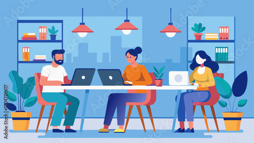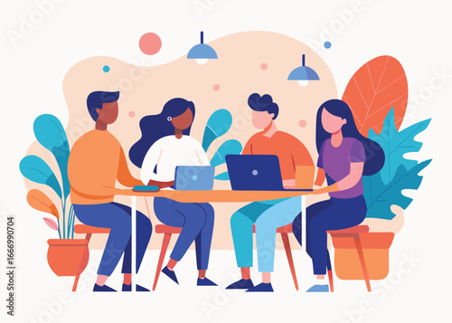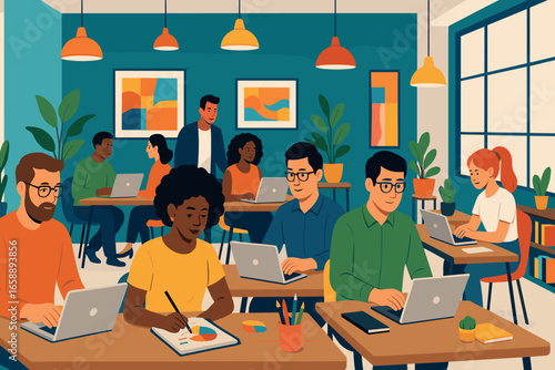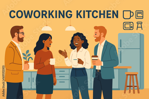 Modern co-working space illustration perfect for website banners, brochures, or presentations.