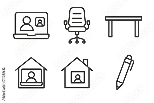 Office Workplace and Remote Work Setup Icons Vector Set