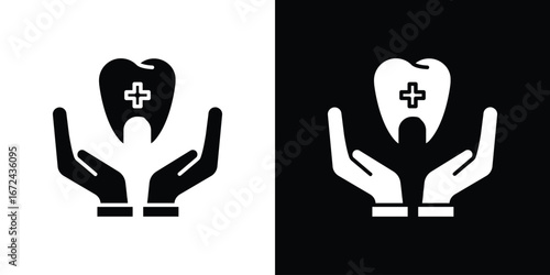 Tooth icon, black and white outline and solid fill