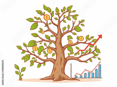 Diversified investments illustration with gold, real estate, and stock market data representing financial planning and wealth accumulation